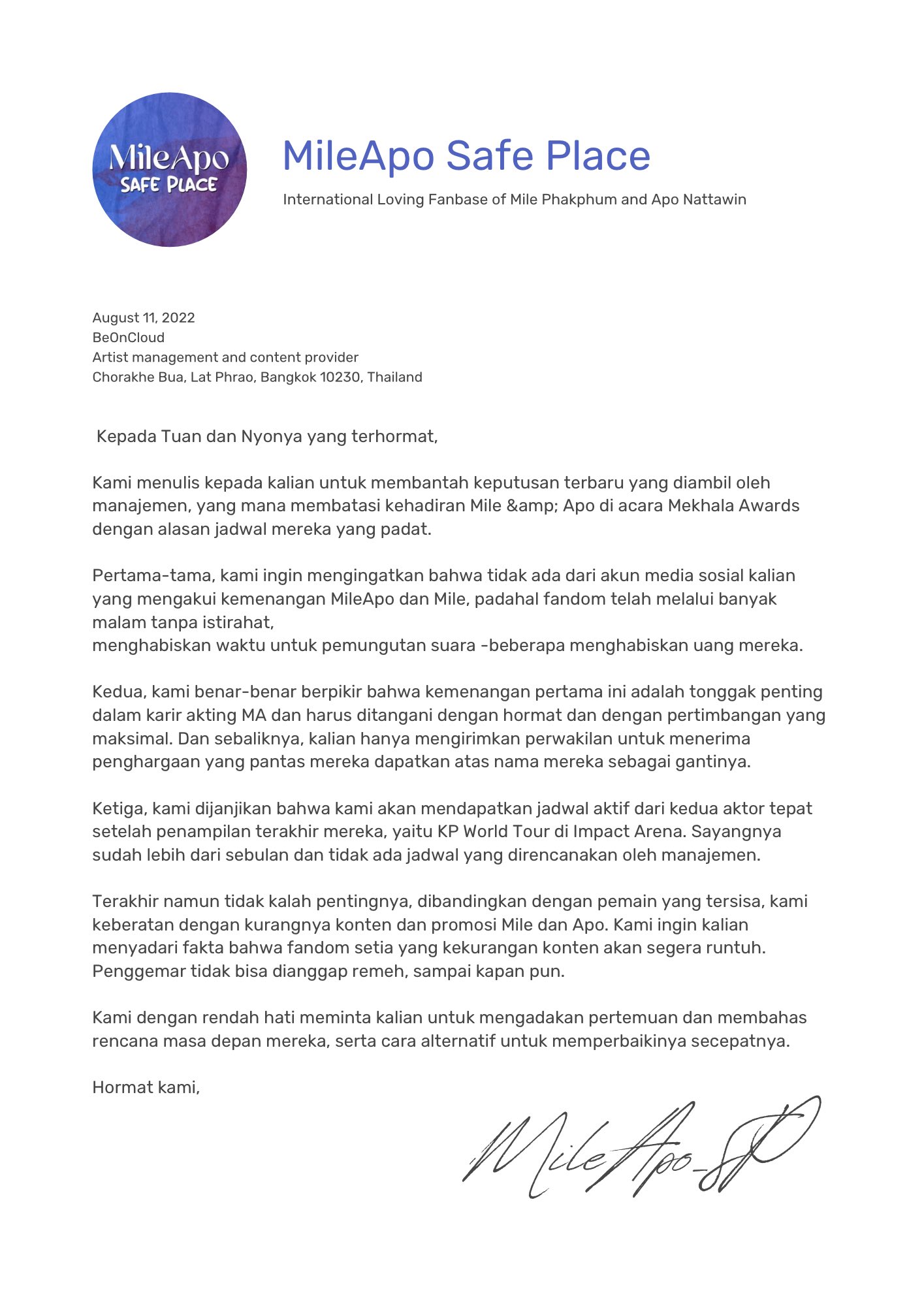 Mileapo Safeplace On Twitter Disagreement Letter To Management This Letter Was Written By Mileapo Sp And Is Solely Addressed To Beoncloud Th Milephakphum Nnattawin Greenyrose Apocolleagues Mileapo Mileapoforever มายอาโป
